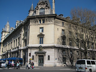 Below is a picture of Prefecture de Police, or in English, the Police Headquarters. Control of the headquarters has gone through several hands. It was once the actual police headquarters of Paris' finest police officers and detectives (I don't think this is where Inspector Jacques Clouseau worked haha). Then Hitler took over and turned it into a Nazi control office. Then, (I think) some royal family members lived here at some point, temporarily. And then the people took over and this is where the French Revolution basically took place. It was the royal family (reign of terror) was kept prisoner, Marie Antoinette was kept here. Pretty wild eh? She was beheaded in the plaza where those Devil Wears Prada fountains are and the Oblisk is.